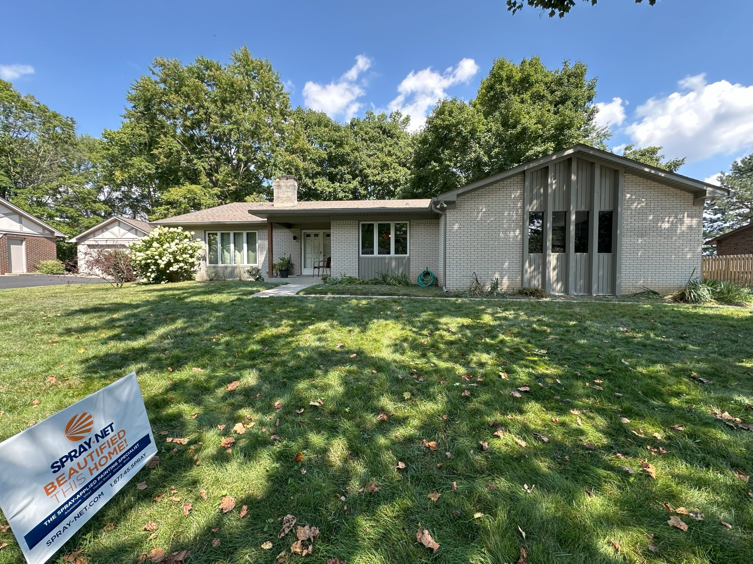 Spray-Net North Indy provides professional exterior painting for homeowners in Carmel, IN, delivering a factory-quality finish built for the high-quality homes and discerning homeowners that define one of Indiana’s most prestigious communities. Many Carmel homes were built in the 1990s or earlier and feature brick, Hardie Board, or wood siding — materials that are structurally sound and well-built, but whose curb appeal may have grown worn or dated over the decades. Whether it’s brick that’s ready to be brought into a more modern aesthetic or Hardie Board that has faded over time, our specialized spray techniques and proprietary coatings restore and protect your home’s exterior with a smooth, durable finish that looks like new without the cost of full replacement. For Carmel homeowners who take pride in their properties and value quality above all else, our low-maintenance finish means no peeling, no fading, and no repainting every few years — just lasting results that protect your investment. Most projects are completed in just one day with minimal disruption to your daily life. Learn more about our services on our Exterior Painting Services page.